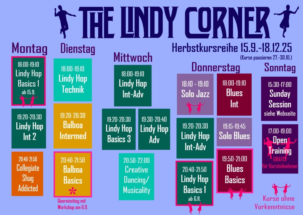 Mehr Infos zu Stundenplan und Terminen der wöchentlichen Tanzkurse ab September